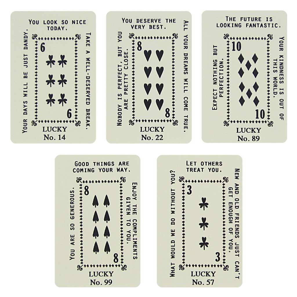 This card has 5 fortunes to choose from to acknowledge someone’s kindness. Pick one to reveal the future. Fortunes are attached to the card with a handy paperclip.